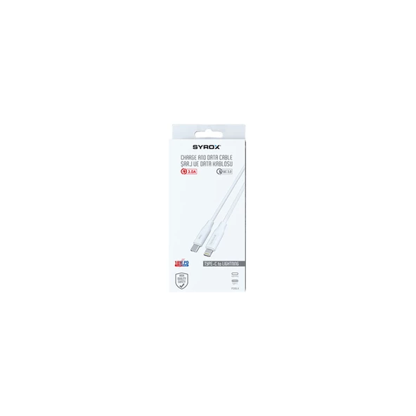 Syrox PD18LK Type-c to Lightning 1m / 18W PD 3.0A Şarj ve Data Kablosu
