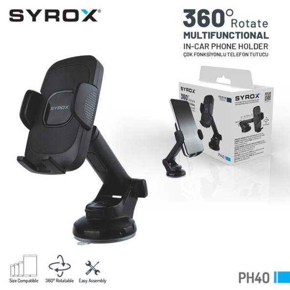 Syrox PH40 Vantuzlu Araçiçi Telefon Tutucu 360 Derece Dönebilen