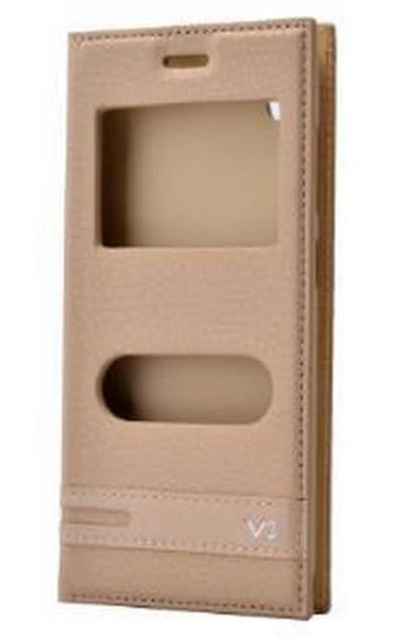 Zore Venüs V3 5570 ile Uyumlu Elite Serisi Pencereli Kapaklı Kılıf Gold