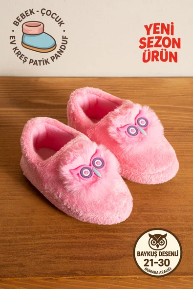 Albishoes Kız Çocuk Panduf Ev Patiği Pamuk Astarlı Baykuş Figür Ev Kreş Ayakkabısı Sevimli Baykuş