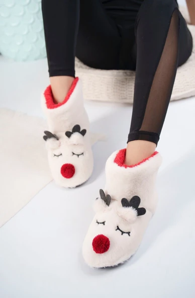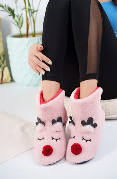 Albishoes Kadın Geyik Figürlü Ev Botu Panduf Anne Çocuk Yumuşak Rahat Sessiz Taban Ev Ayakkabısı