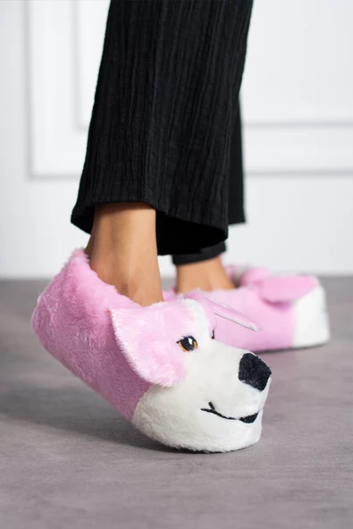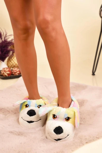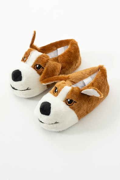Albishoes Sevimli Köpek Hayvan Figürlü Peluş Yumuşak Taban Ev Botu Kışlık Hayvanlı Ev Panduf (30-40)