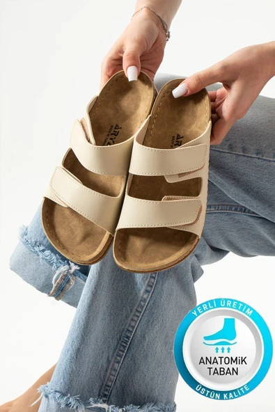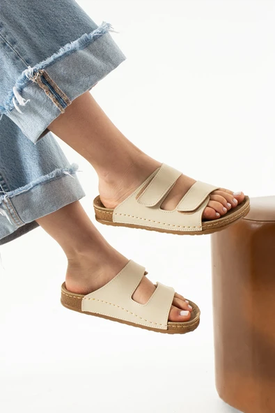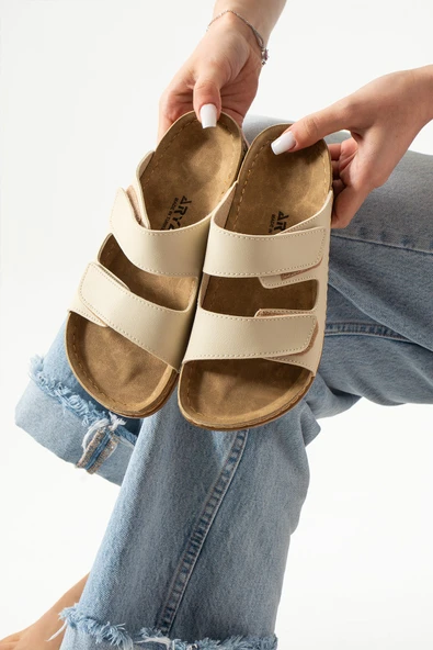 Albishoes Charlie Çift Cırtlı Çift Bantlı Yumuşak Rahat Taban Anatomik Günlük Bantlı Kadın Terlik