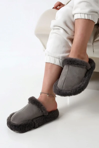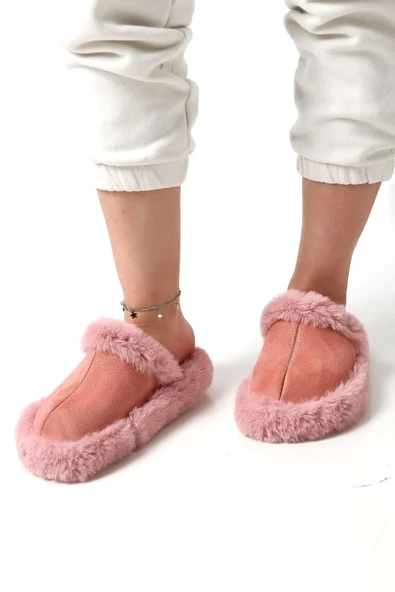 Albishoes Kadın Sessiz Yumuşak Eva Taban Peluş Yünlü Pofuduk Ev Terlik Kışlık Terlik Peluş Terlik