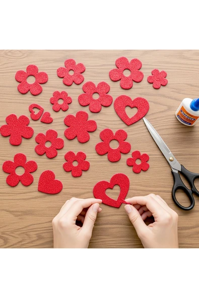 50x70 Eva Tabaka Simli Kırmızı 10'lu Paket