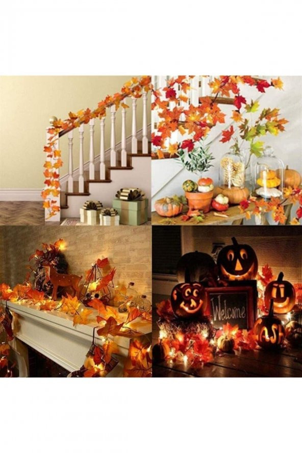 Sonbahar Konseptli Dekoratif Yaprak +3m Günışığı Led Işıklı Sarmaşık Yaprak