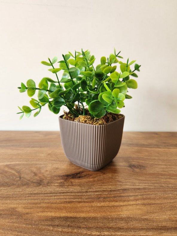 Mini Saksıda Yapay Bitki Şimşir Gerçek Taş Yosunlu Toplam 16 Cm Dekoratif Banyo Mutfak Masa Çiçeği