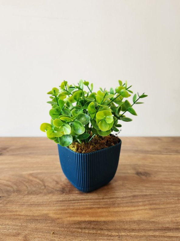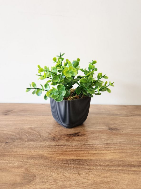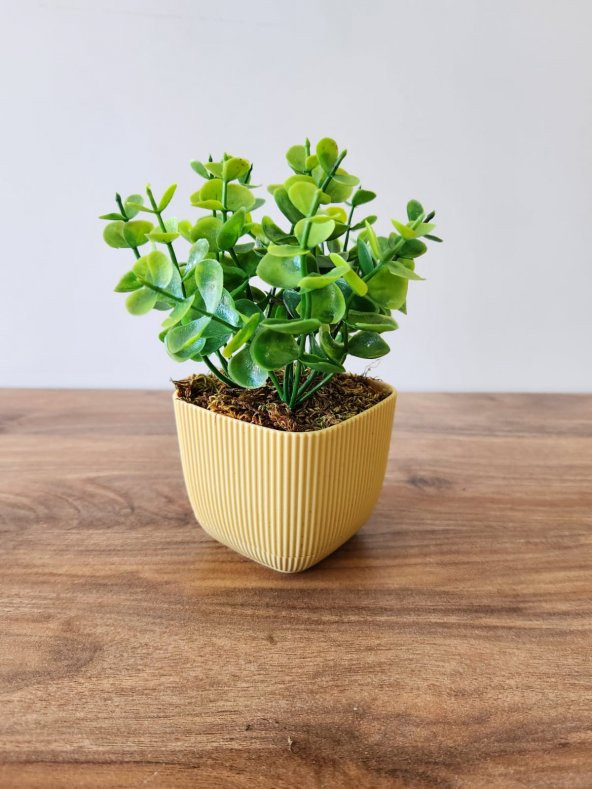 Mini Saksıda Yapay Bitki Şimşir Gerçek Taş Yosunlu Toplam 16 Cm Dekoratif Banyo Mutfak Masa Çiçeği