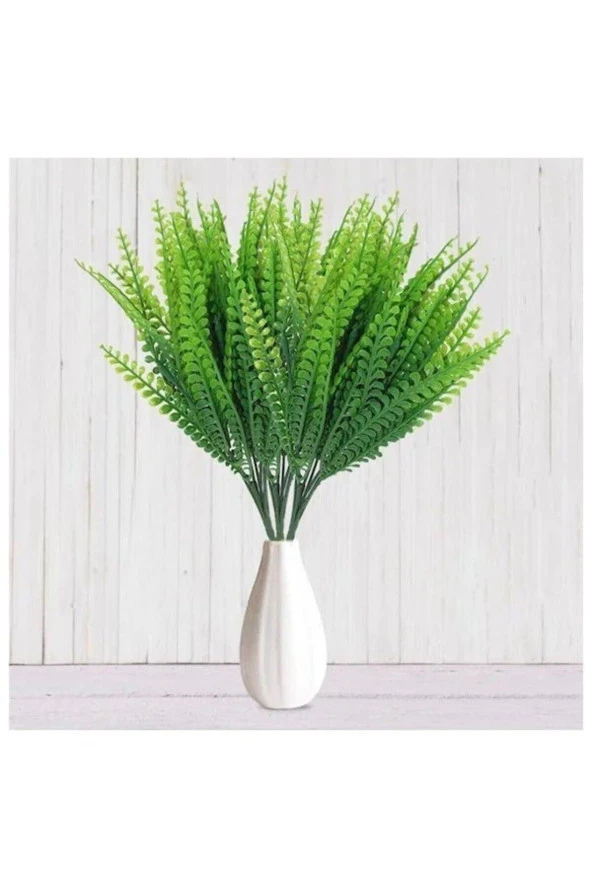 Yapay Bitki Yeşil Lavanta Demeti Pudrasız Model Yapay Dekor Yeşillik Aranjman 35 Cm 7 Dallı