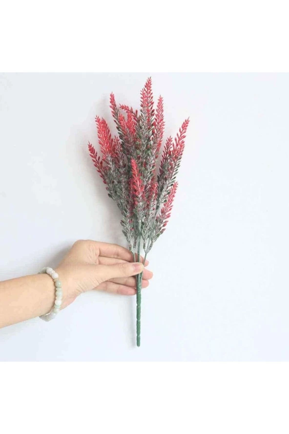 Yapay Bitki Kırmızı Lavanta Demeti Pudrasız Model Yapay Dekor Yeşillik Aranjman 35 Cm 7 Dallı