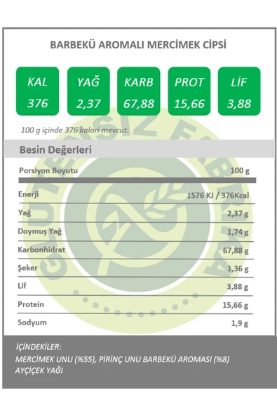 GLUTENSİZ FABRİKA BARBEKÜ SOSLU MERCİMEK CİPSİ 3 PAKET (60 GRAM)