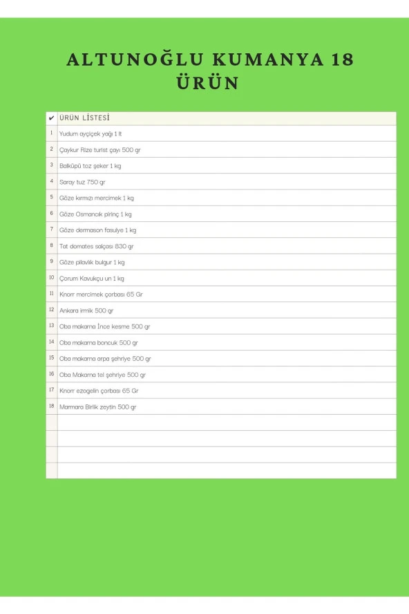 YUDUM Ramazan Paketi Kumanya Yardım Erzak Gıda Kolisi 18 Parça Ürün