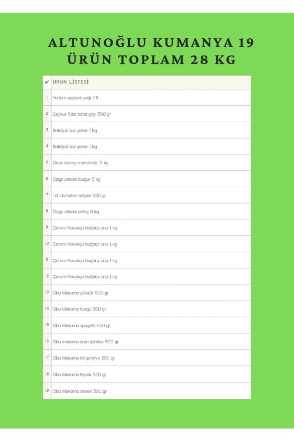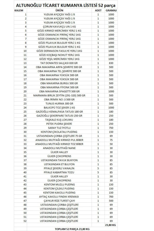 YUDUM Ekonomik Erzak Paketi 46 Parca