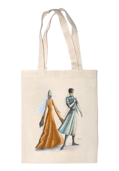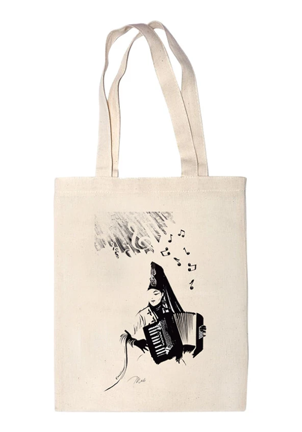 Akordiyoncu Bayan Figürlü Bez Çanta