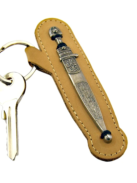 Kafkas Çerkes Desenli Anahtarlık Gerçek Deri