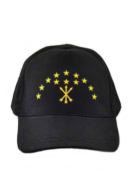 Çerkes Adige Bayrak Baskılı Siyah Şapka
