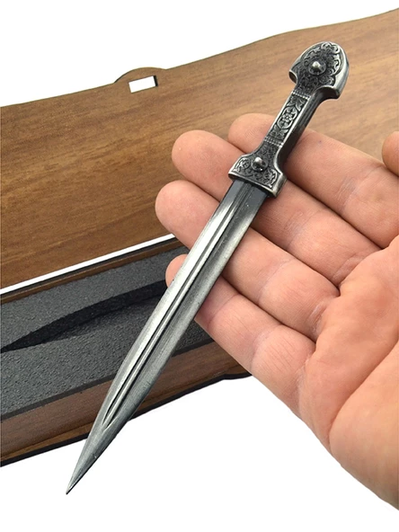 Kafkas Çerkes Kama Zarf Açacağı (Ekolejik Gümüş Eskitme Görünümlü ) MDF Kutulu