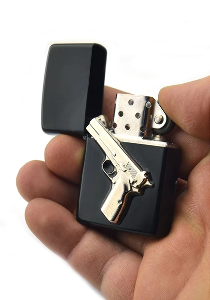 14 lü Tabanca Rölyefli Nikel Benzinli Çakmak