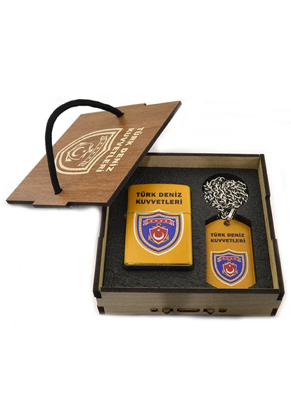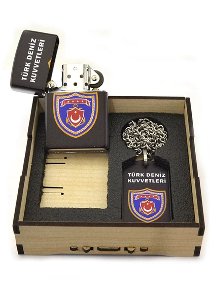 Türk Deniz Kuvvetleri Çakmak - Asker Künye Seti (Koyu Renk)
