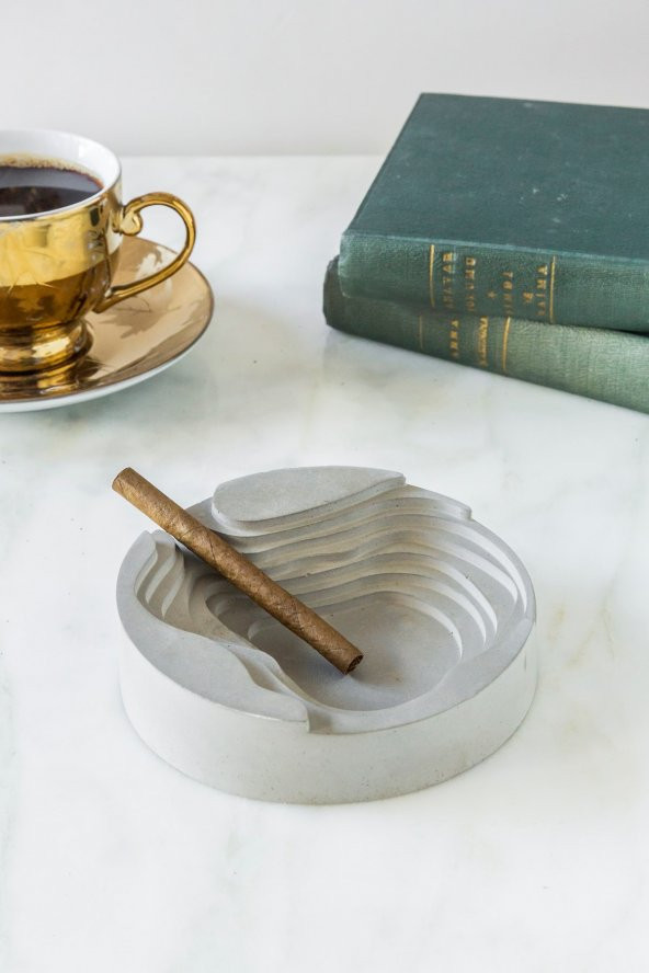 Mermer Desenli Beyaz Metal Küllük & Kültablası