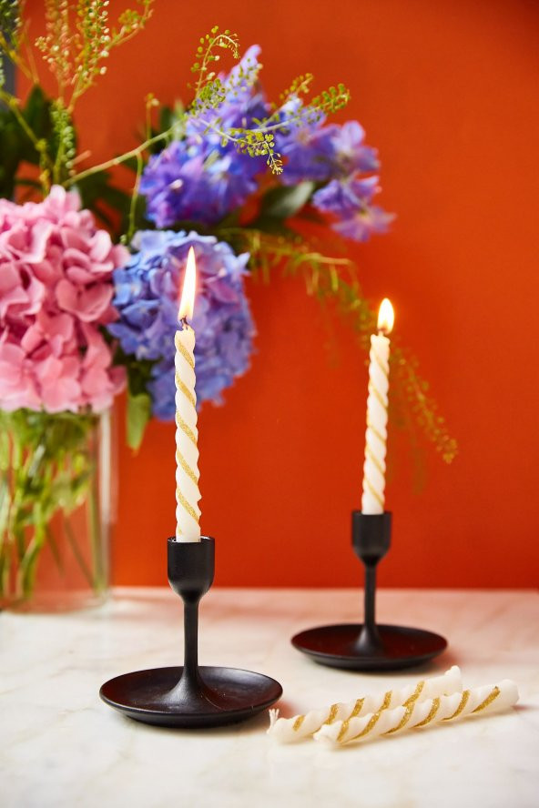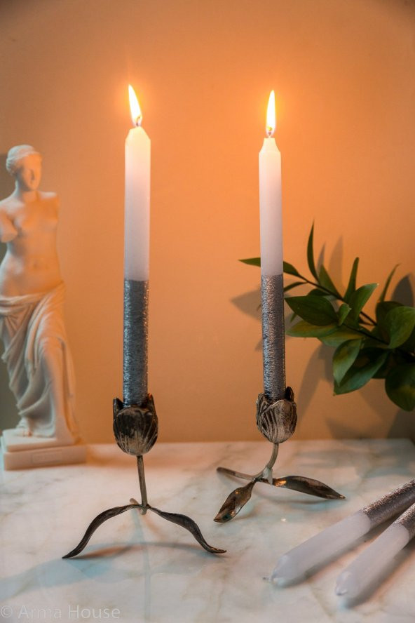 Gümüş Yaldızlı Modern 4lü Mum Seti