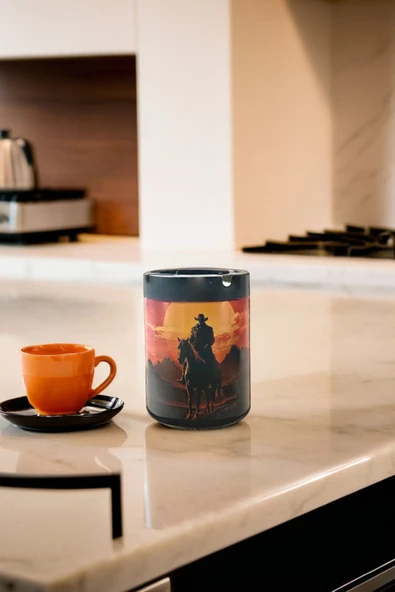 Western Kovboy Temalı Siyah Metal Küllük & Kültablası