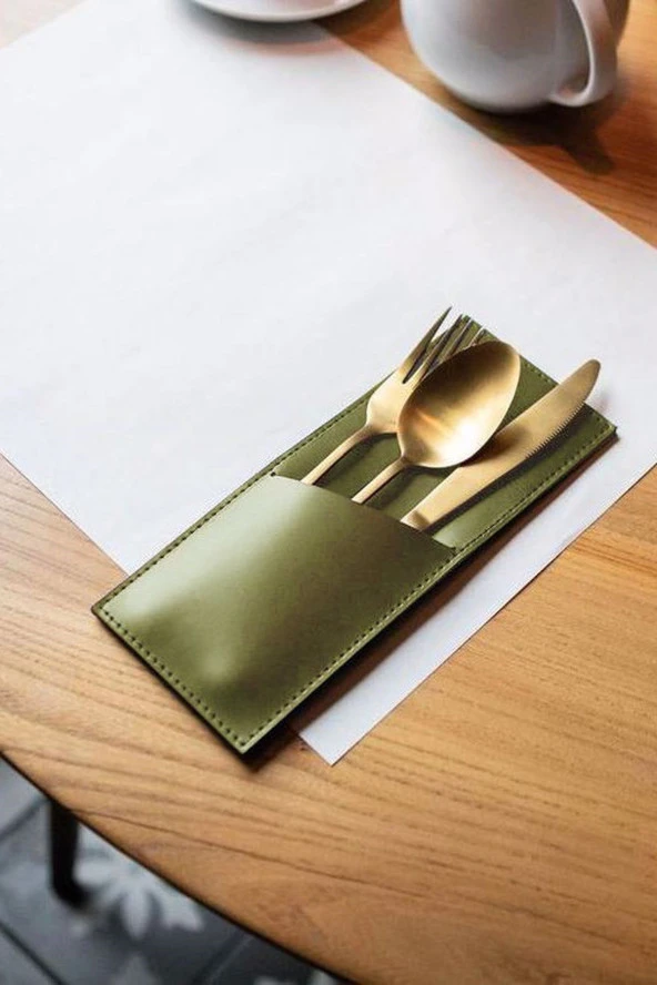 Modern 4lü Haki Deri Kaşıklık