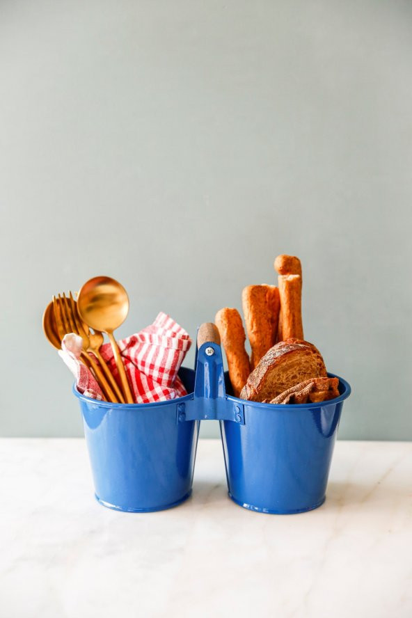 Country Tarzı Ahşap Kuluplu Mavi Galvaniz Kaşıklık