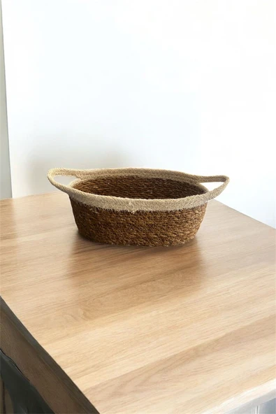 1 Adet Hasır Örgülü Krem Şeritli Organizer & Ekmeklik