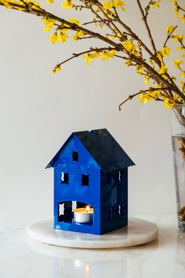 Mavi Renkli Danimarka Evleri Temalı Mumluk