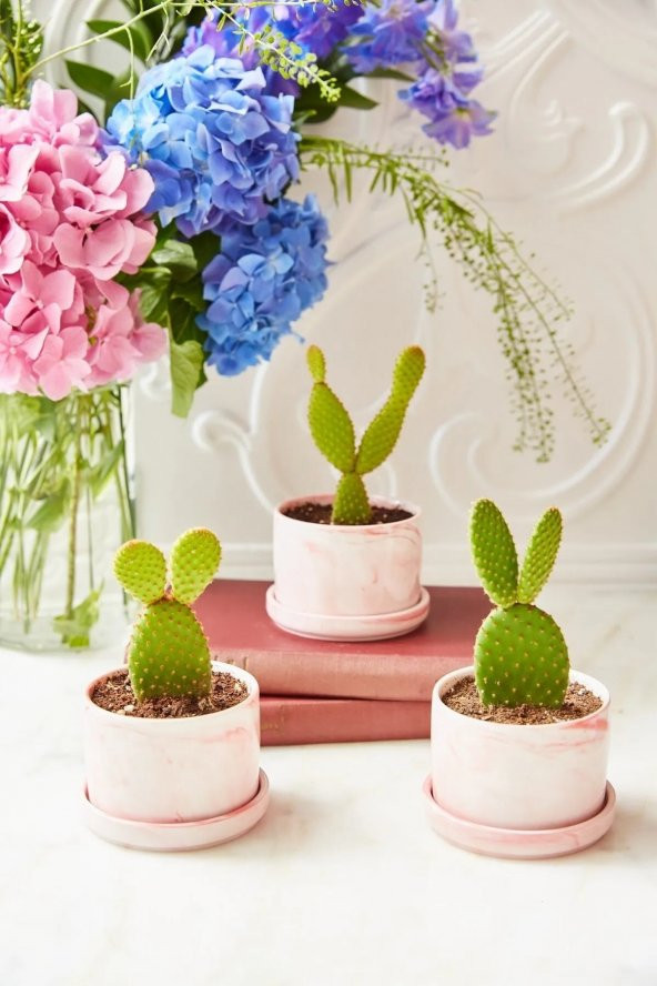3lü Pembe Seramik Saksı & Vazo