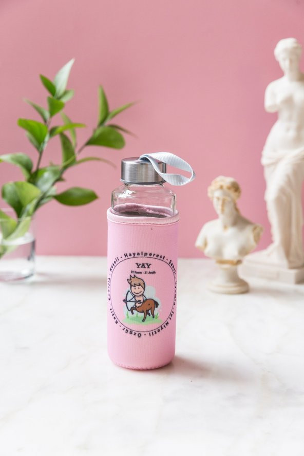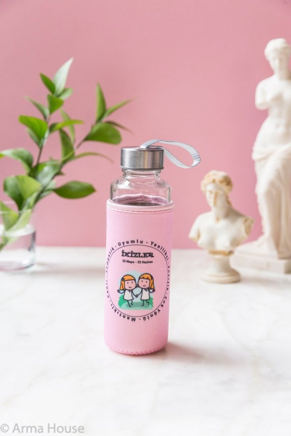 Pembe İkizler Burcu Kılıflı Cam Matara 400ml