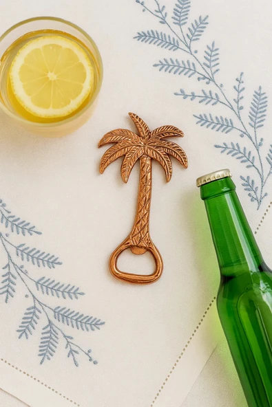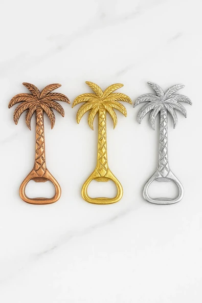 Palmiyeli Metal Şişe Açacağı – Retro Tropik Tasarım | Bakır Renkli Dekoratif Açacak