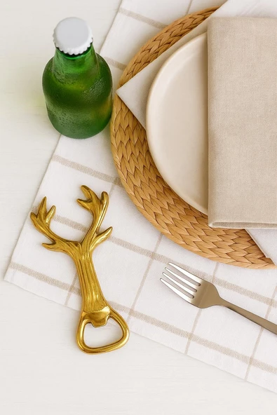 Geyik Boynuzu Figürlü Metal Şişe Açacağı & Altın Renkli Dekoratif Açacak