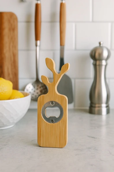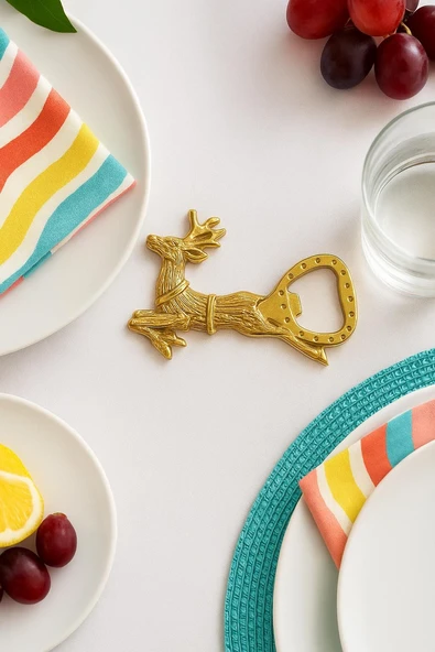 Geyik Figürlü Metal Şişe Açacağı & Altın Renkli Dekoratif Açacak