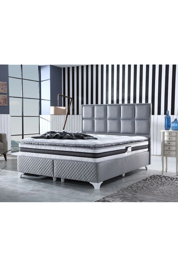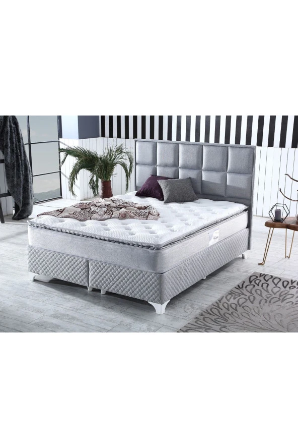 ASROYALLÜKS Gri Ultra Ortopedik Şehrazat Pedli Paket Yaylı Tavşan Tüyü Kumaş Yatak
