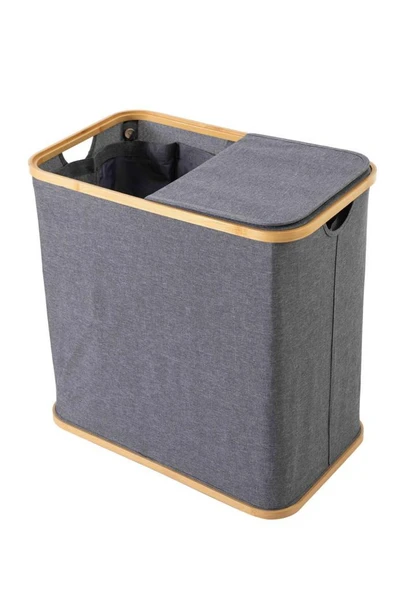 Bambu Ayaklı Çamaşır Sepeti 2 Bölmeli (64 x 33 x 73 CM) - Demonte