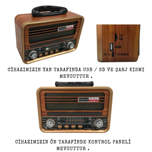 Everton RT-731 Bluetooth, Nostalji , FM/AM/SW 3 Band Radyo ,usb, sd mp3 player