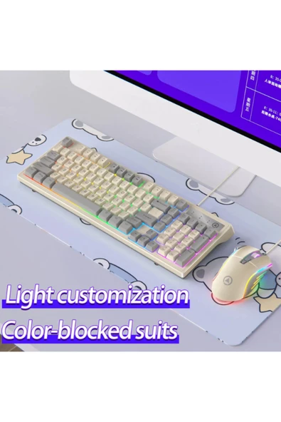 ATAsoft ELEKTRONİK Since 2021 Km800 Klavye Led Işıklı Modlu 98 Tuşlu Oyuncu Klavye Mouse Seti Usb Girişli Gaming Klavye