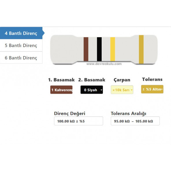 OEM 100 Kr (Kiloohm) Direnç 1/4 Watt (5 Adet)