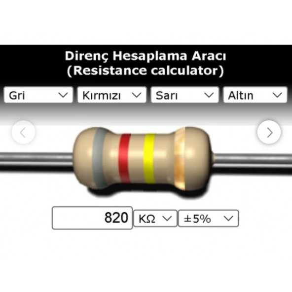 OEM 820 Kr (Kiloohm) Direnç 1/4 Watt (5 Adet)