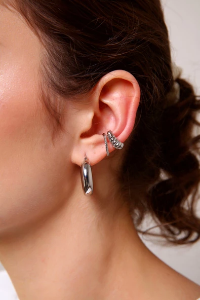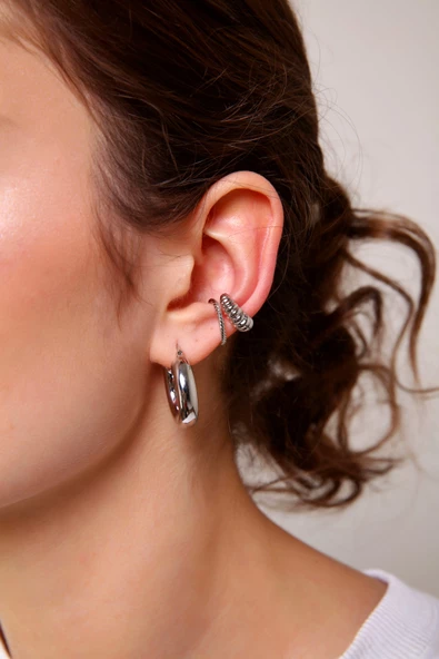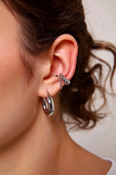 Kadın Gümüş Renk 2'li Vintage Cuff (Kıkırdak Küpe)