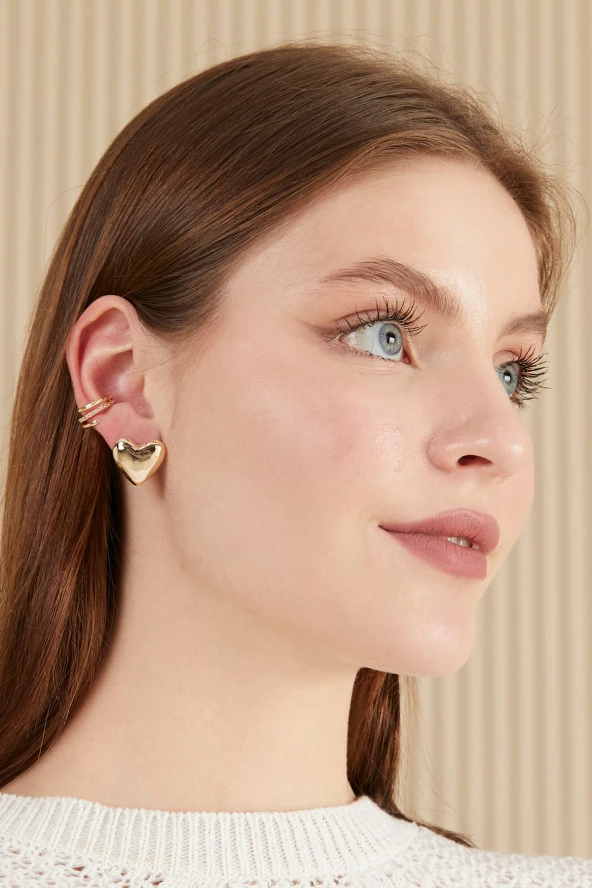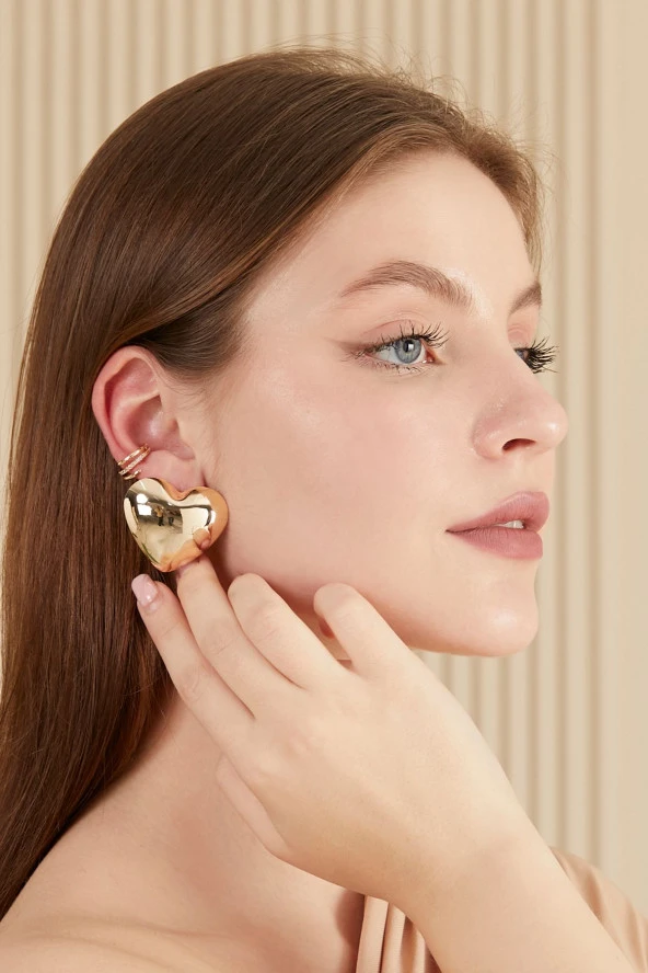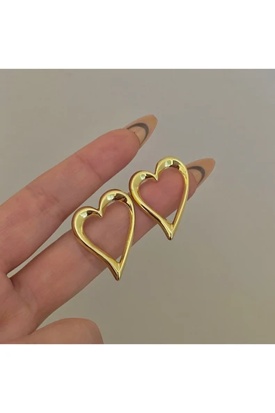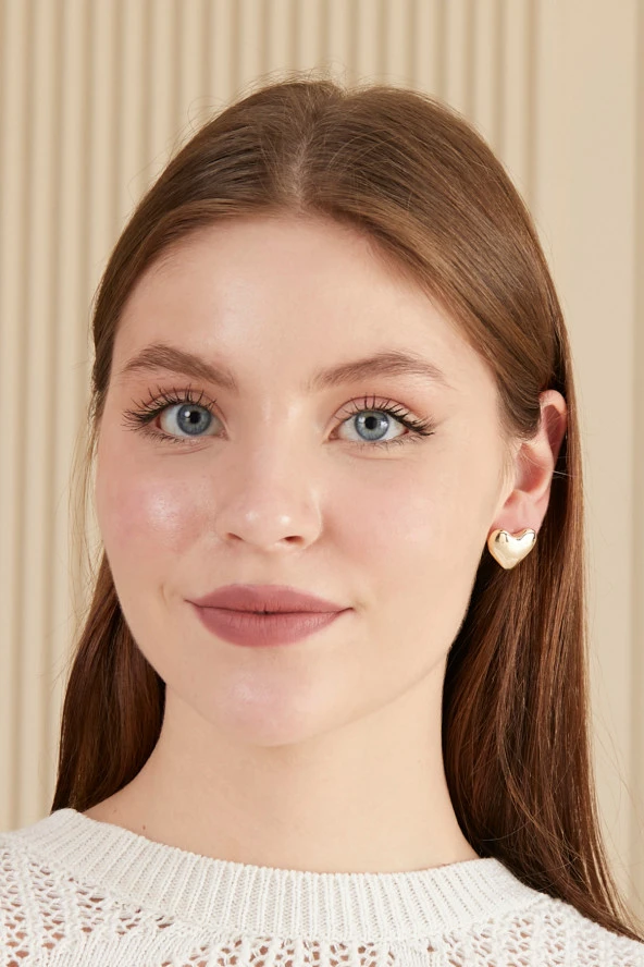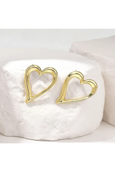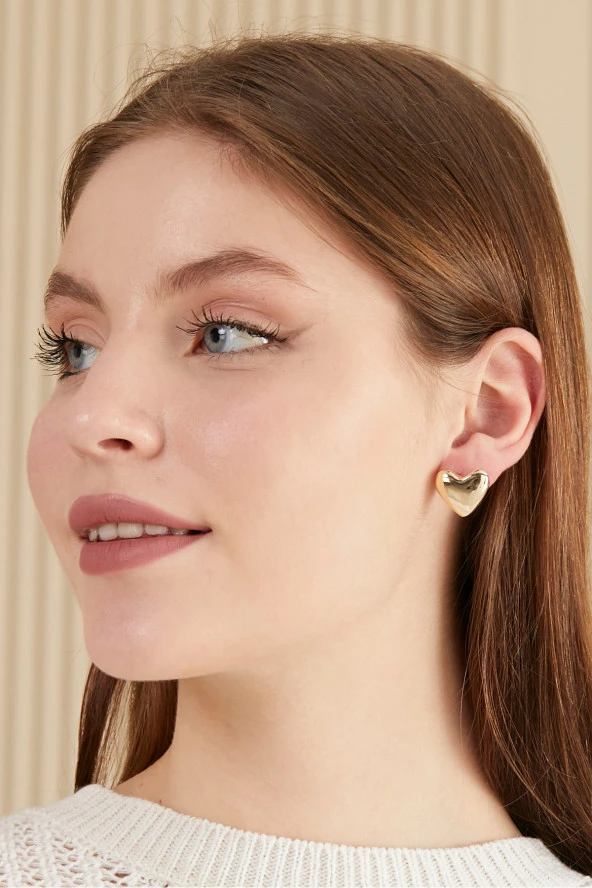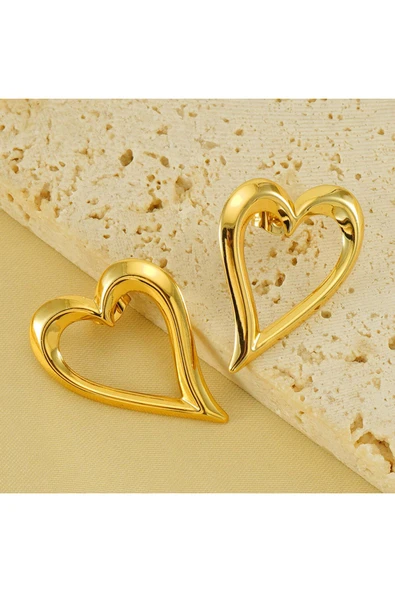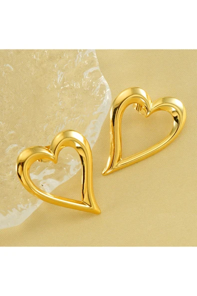 Parlak Yüzey Kalp Küpe Altın Kaplama