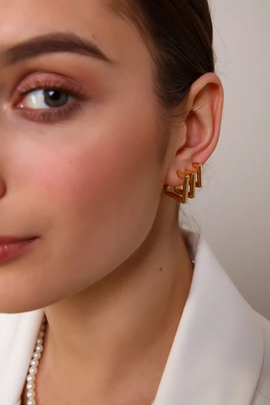 Kadın Gold 3'lü Kare Küpe Seti