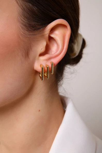 Kadın Gold Renk Oval 3'lü Küpe