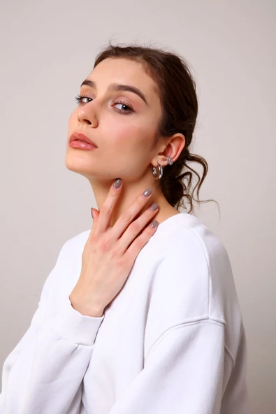 Silver Uniq Halka 2'li Küpe Seti