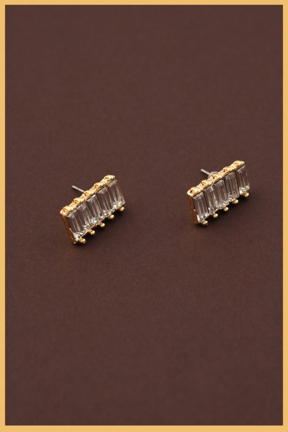 Altın Kaplama 2li Sıralı Zirkon Baget Küpe Seti