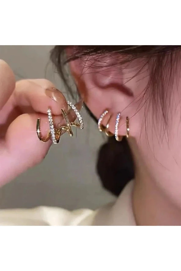 Kadın Gold İç İçe Halka Küpe seti
