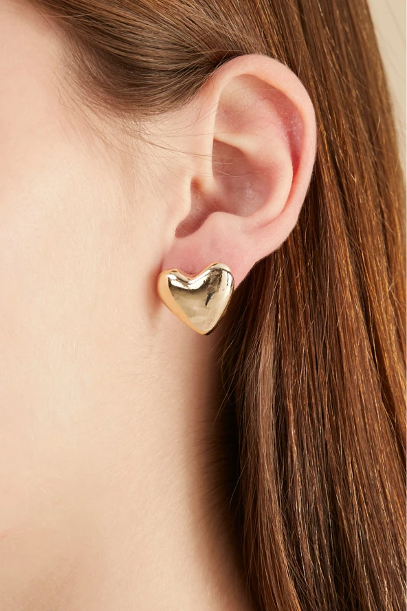Gold Parlak Tombul Kalp Küpe.