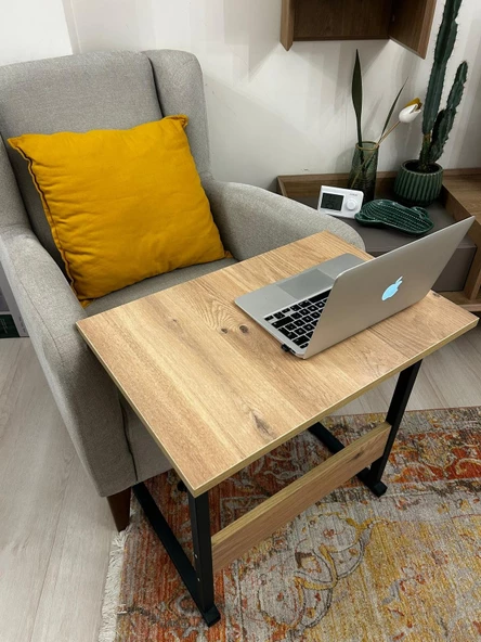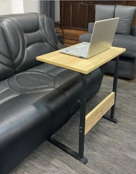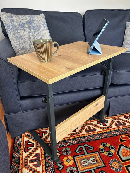 Metal Ayaklı Yükseklik Ayarlı Laptop Sehpası Kahvaltı Masası Çalışma Sehpası Atlantik Çam 60x40
